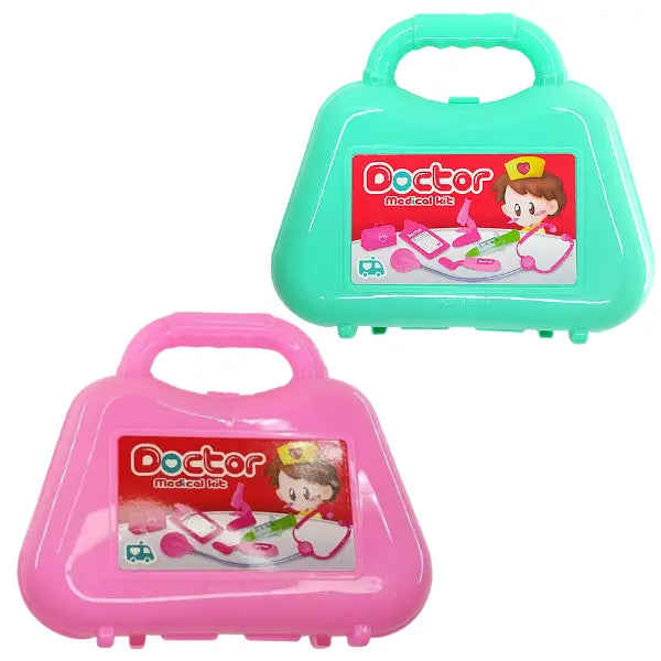 Pretend Play Medical Kit - RECEIVE 1 - help children learn about the human body and calm doctor-related fears as they engage in Doctor/patient role play with this kid Doctor kit. Or pretending to play the Dentist cleans his teeth and the children's Medical kit teaches the child to familiarize himself with all the gadgets and equipment used by the Doctor. Case Measures 7 X 6 inch case. 4 piece set includes Stethoscope, Scissors, Syringe and Hospital Wrist Band.