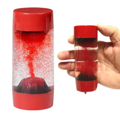 • Volcano Tower Double -  - RECEIVE 1 -  A visual sensation. Just flip this double trouble volcano over and watch as the volcano beads rise up to the top. Flip it over and watch again and again.  Clear acrylic filled with water and small red beads.  Measures approx. 5" tall and 1 3/4" square
